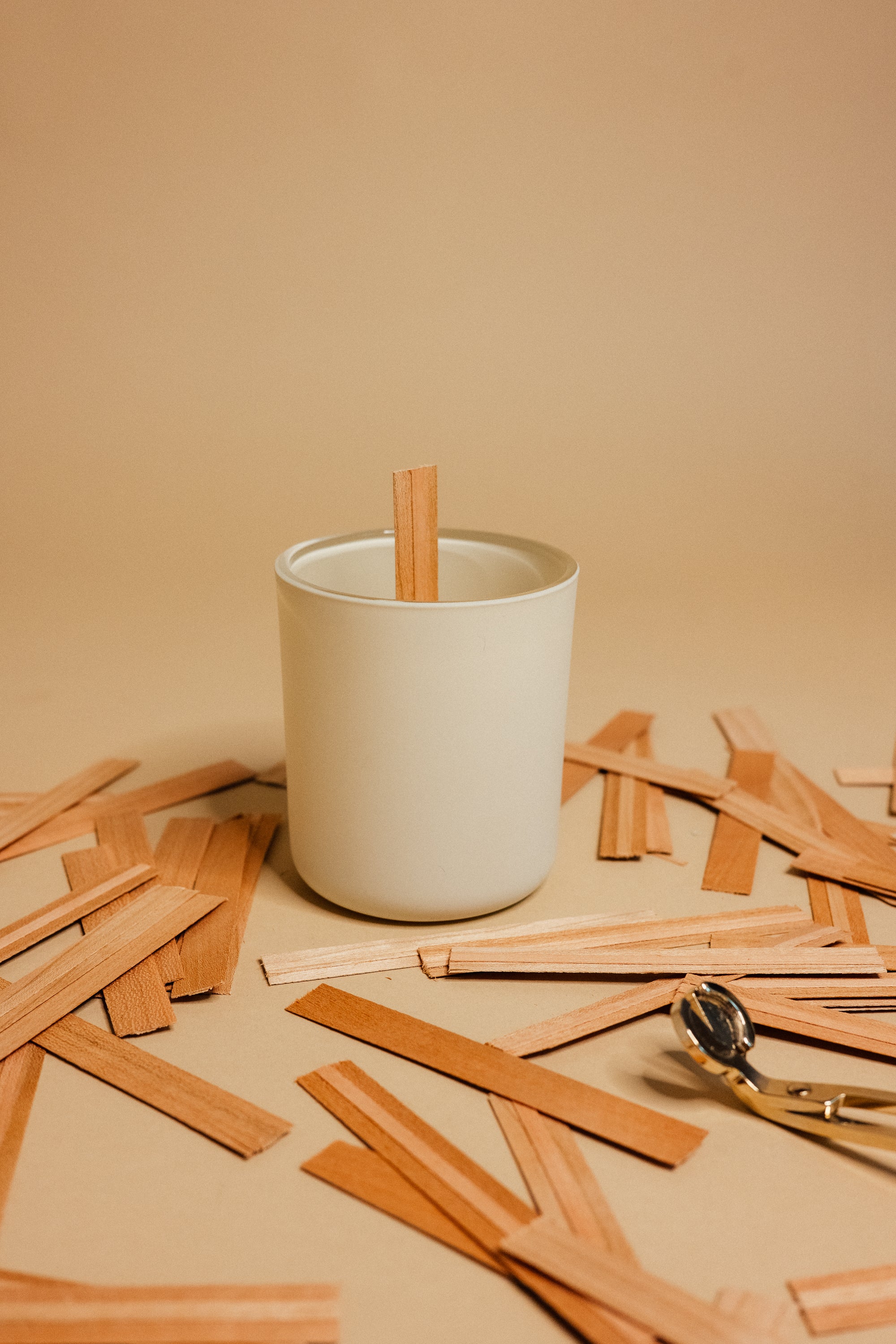 Wood wicks create less soot, promoting a clean and even burn. A more sustainable option than cotton wicks, they also offer a longer burn time for a lasting experience.