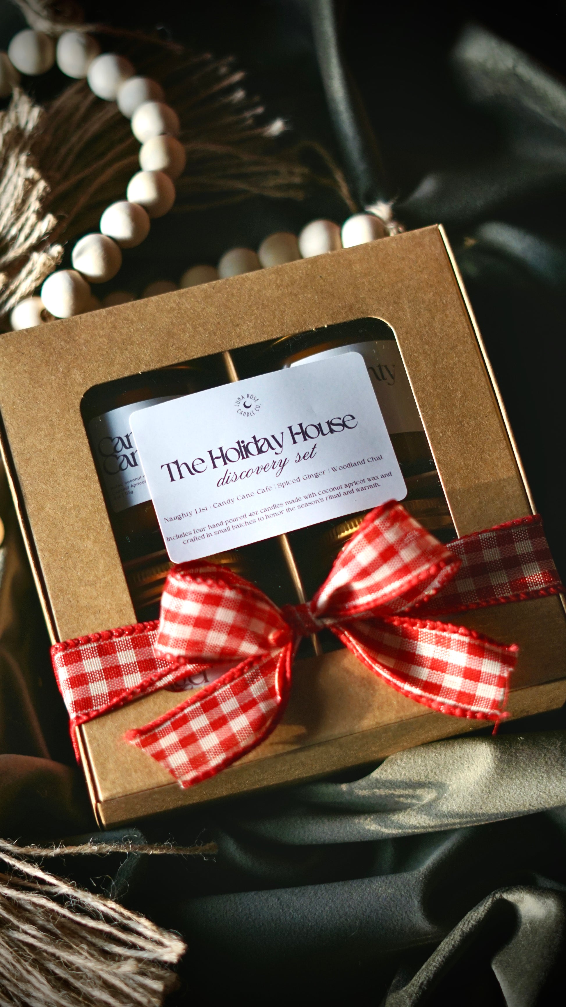 The Holiday House — Cozy, sweet, and spirited. Candy Cane Café, Naughty List, Woodland Chai, Spiced Ginger