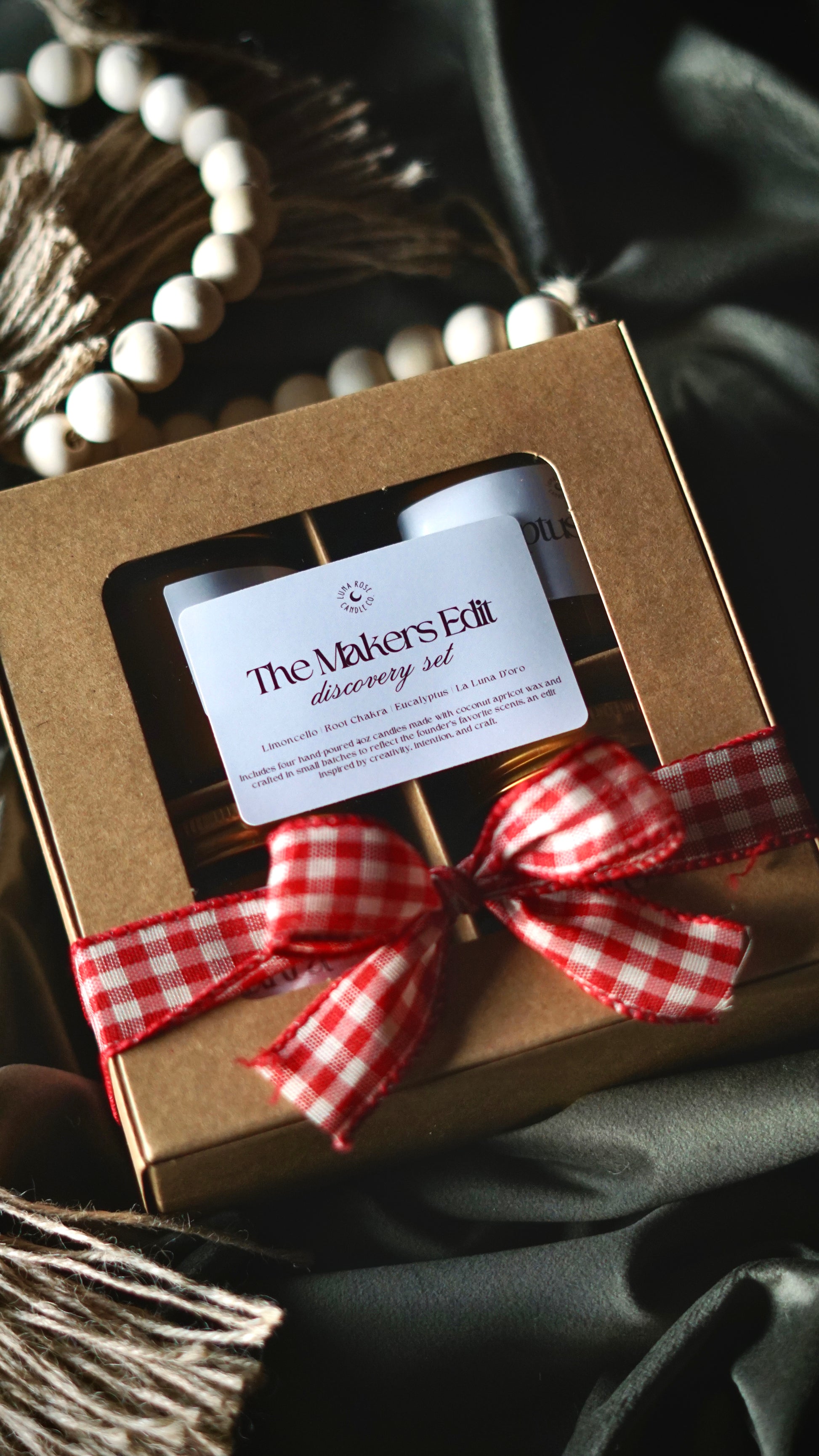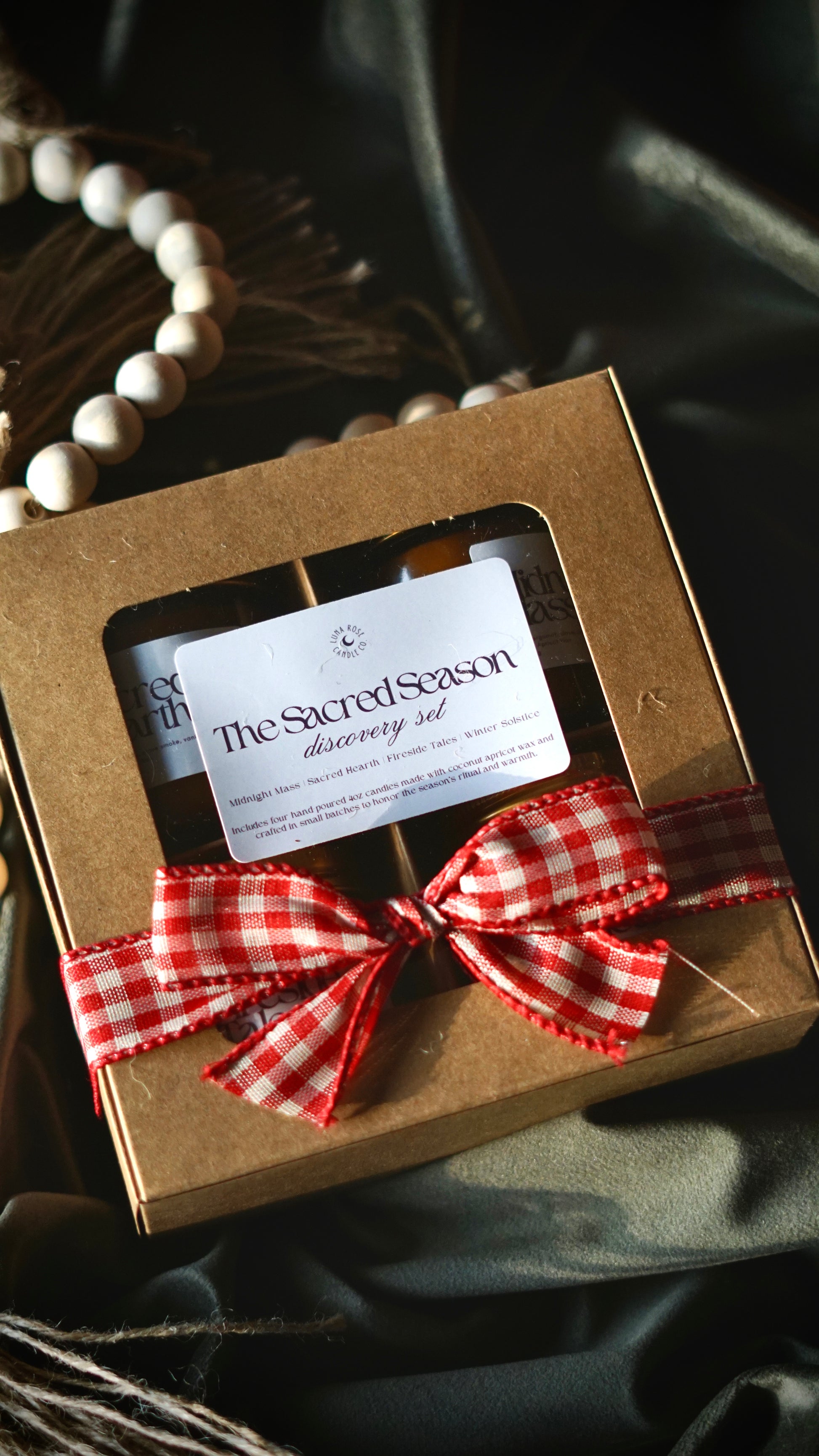 Each set includes four 4oz candles, hand-poured in small batches with coconut apricot wax. The perfect way to explore our scents before committing to a full size. Thoughtfully curated for ritual, nostalgia, and holiday gifting.