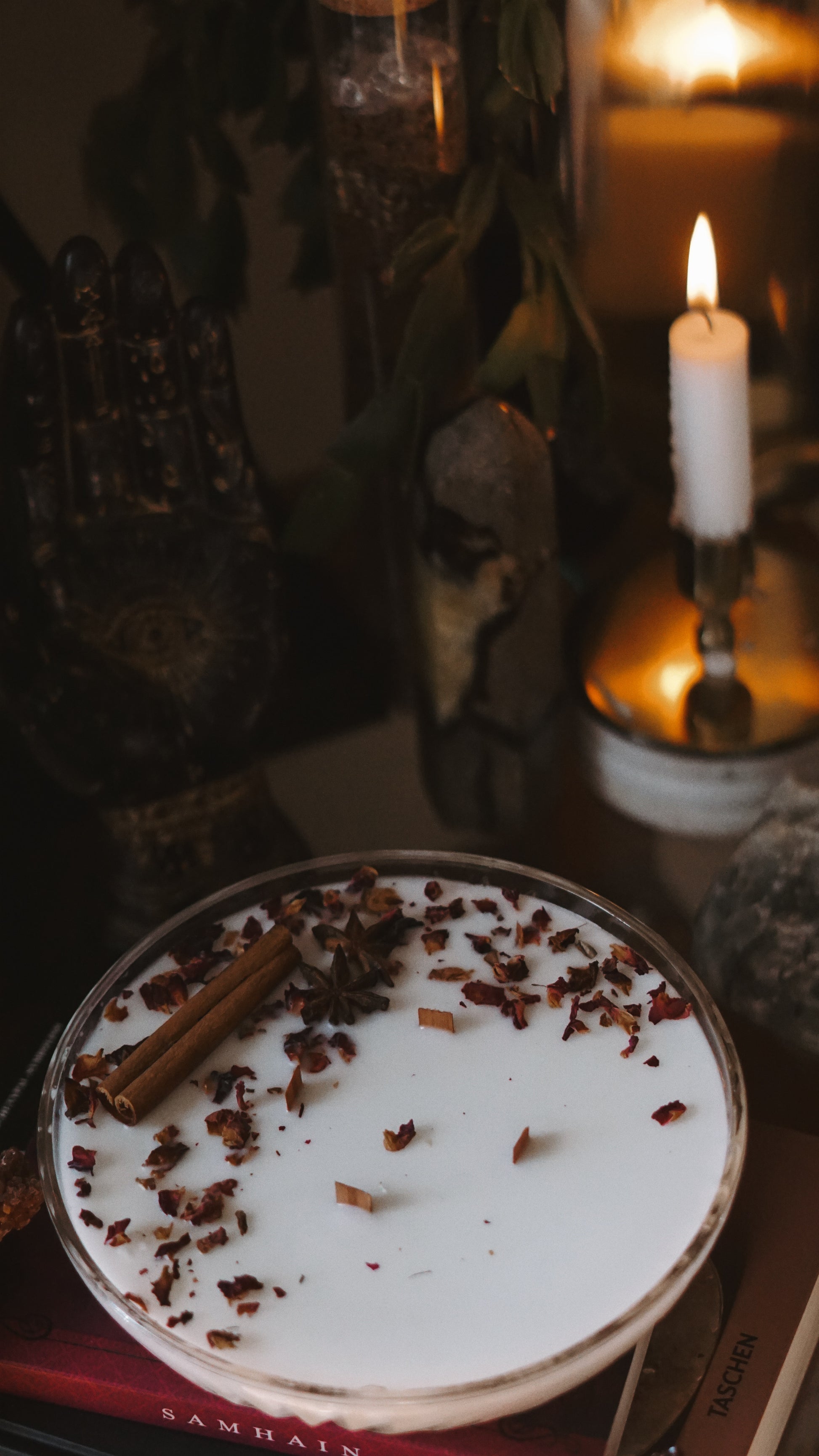 DRIED FLOWERS ARE FOR DECORATIVE PURPOSES ONLY. PLEASE REMOVE ALL LARGE DRIED FLOWERS BEFORE LIGHTING.