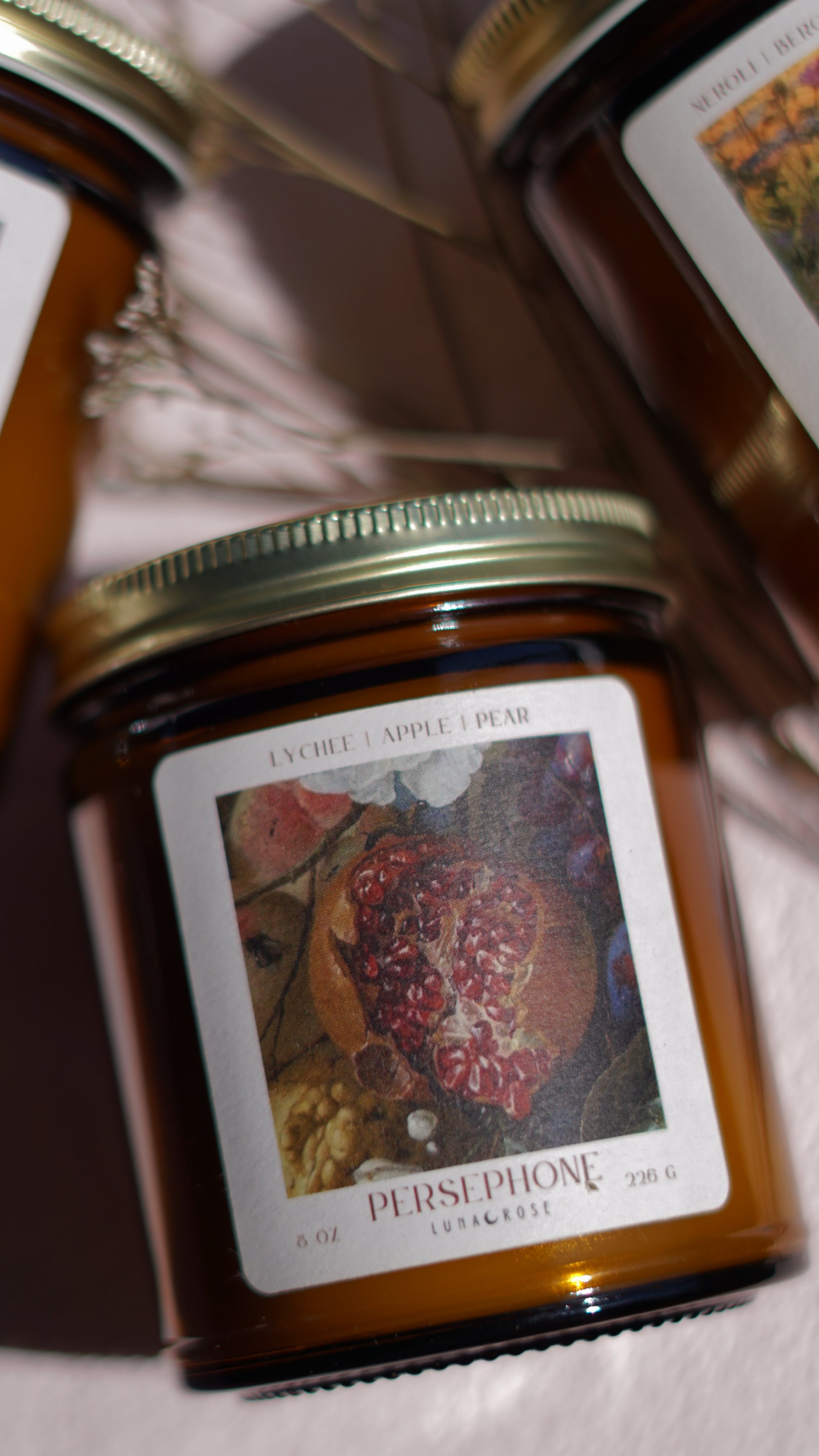 Inspired by Persephone, the goddess of both spring and the underworld, this candle embodies the balance between light and shadow. Juicy lychee, crisp apple, and sweet pear evoke the freshness of spring’s first fruits, symbolizing rebirth and renewal. Light Persephone to honor transformation, embrace change, and step into your own power.